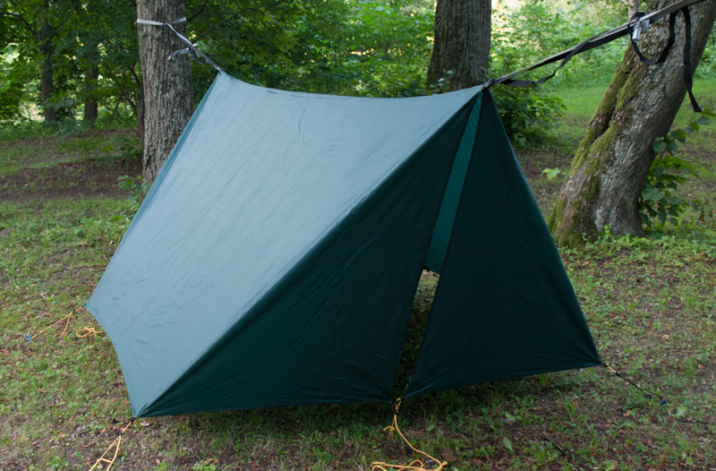 Hex tarp on kuusnurkse põhiplaaniga vihmakate rippvoodile.